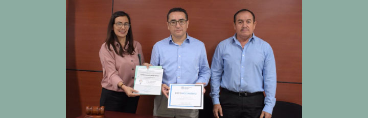 La Jefa del Área de Capacitacion del TEQROO, Martha Patricia Villar Peguero fue la encargada de entregar los reconocimientos a los ponentes.