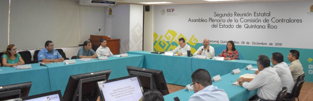 Chetumal, Q. Roo a 09 de diciembre de 2019.- La Titular del Órgano Interno de Control, Karla Cetz Estrella asistió a la Segunda Reunión Estatal de la Asamblea Plenaria de la Comisión Permanente de Contralores del Estado de Quintana Roo, en la que el Secretario de la Contraloría del Estado, Rafael Antonio del Pozo Dergal dio la bienvenida a los asistentes en la Sala de Juntas Moisés Sáenz Garza de la Secretaría de Educación de Quintana Roo.
