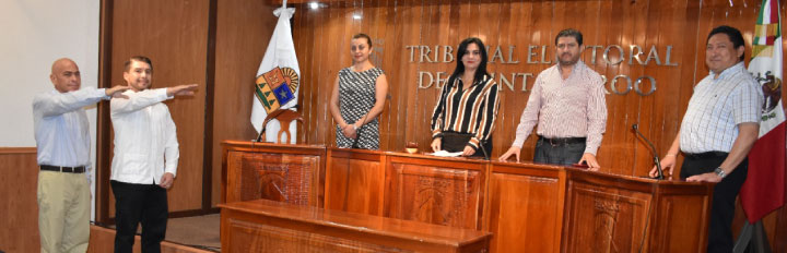 Chetumal, Q. Roo a 16 de enero de 2020.- Ante los integrantes del Pleno del Tribunal Electoral de Quintana Roo, Mario Humberto Ceballos Magaña y Fredy Daniel Medina Rodríguez rindieron protesta como Secretario de Estudio y Cuenta y Secretario Auxiliar de Estudio y Cuenta, respectivamente.