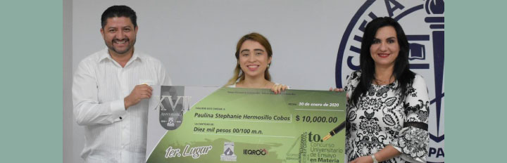 Las ganadoras de la cuarta edición de este concurso son: Paulina Stephanie Hermosillo Cobos, en el primer lugar; María Estefany Arceo Mis, en el segundo lugar, y Sofía Pamela Calderón Ley, en el tercer lugar, las cuales recibieron un premio económico de 10 mil pesos, 6 mil pesos y 3 mil pesos, respectivamente. Las tres jóvenes ganadoras estudian en la Universidad Modelo, campus Chetumal.