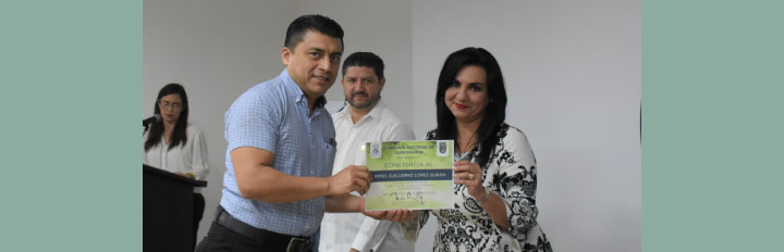 En esta ceremonia, se entregó un reconocimiento especial a los profesores de la Universidad Modelo Chetumal, Guillermo López Durán y Juan Serrano Peraza, por motivar a los jóvenes para que participen en los concursos.