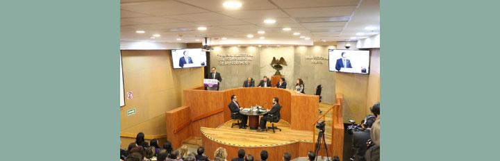 La sesión solemne de rendición de cuentas se realizó en el Salón de Plenos de la Sala Regional Xalapa, con la presencia de la Magistrada Eva Barrientos Zepeda y el Magistrado Adín Antonio de León Gálvez.