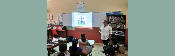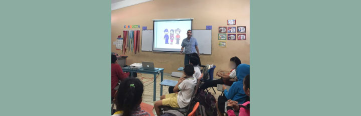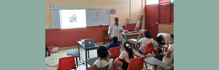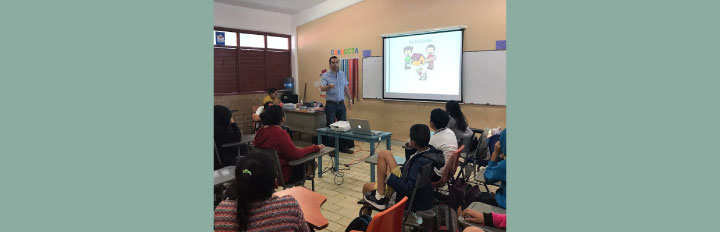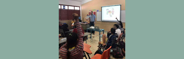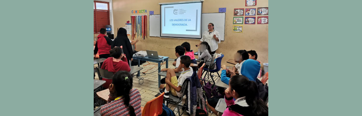 María Sarahit Olivos Gómez, Secretaria de Estudio y Cuenta y Eliud de la Torre Villanueva, Jefe de Área de Investigación, fueron los encargados de impartir la plática sobre Valores Democráticos ante alumnas y alumnos del 5ºB, el 6ºA y 6ºB de primaria de la Escuela Primaria Jesús Cetina Salazar, ubicada en la colonia Centro de Chetumal.
