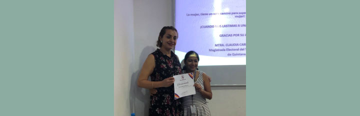 La Magistrada Carrillo Gasca impartió esta plática a invitación de las autoridades de la Universidad del Sur Cancún, en conmemoración del Día Internacional de la Mujer.