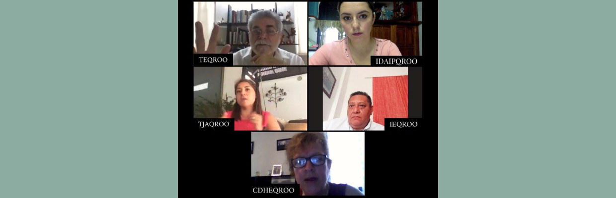 Este Grupo de Trabajo de los Organismo Autónomos da seguimiento al convenio firmado en junio de 2019 por parte de los titulares de la Comisión de los Derechos Humanos (CDHQROO), del Instituto de Acceso a la Información y Protección de Datos Personales (IDAIPQROO), del Instituto Electoral de Quintana Roo IEQROO), del Tribunal Electoral de Quintana Roo (TEQROO) y del Tribunal de Justicia Administrativa de Quintana Roo (TJAQROO).