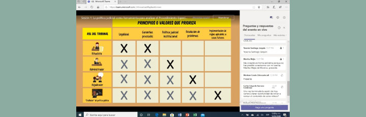 Chetumal, Q. Roo a 18 de mayo de 2020.- La Magistrada del Tribunal Electoral de Quintana Roo, Nora Cerón González y personal jurídico de este órgano jurisdiccional participaron en la primera sesión del Seminario en línea sobre el Procedimiento Especial Sancionador que imparte el Magistrado de la Sala Superior del Tribunal Electoral del Poder Judicial de la Federación, Reyes Rodríguez Mondragón en colaboración con la Asociación de Tribunales Electorales de la República Mexicana.