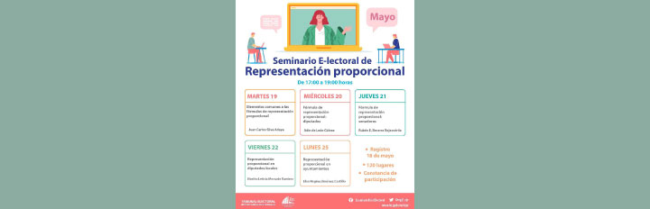 Los temas abordados fueron: Elementos comunes a las fórmulas de Representación Proporcional por parte de Juan Carlos Silva Adaya, Magistrado de la Sala Regional Toluca del TEPJF; Fórmula de Representación Proporcional: Diputados, por parte de Adín de León Gálvez, Magistrado de la Sala Regional Xalapa del TEPJF; Fórmula de Representación Proporcional: Senadores, por parte de Rubén E. Becerra Rojasvértiz; Representación Proporcional en Diputados Locales, Martha Leticia Mercado Ramírez, Magistrada del Tribunal Electoral de la Ciudad de México y Representación Proporcional en Ayuntamientos por parte de Elva Regina Jiménez Castillo, Magistrada del Tribunal de Justicia Electoral del del Estado de Baja California.