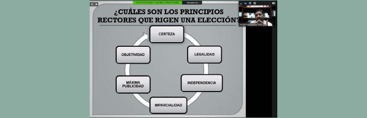 Chetumal, Q. Roo a 29 de mayo de 2020.- El Tribunal Electoral de Quintana Roo continúa impartiendo una serie de webinars, por lo que este día correspondió al Magistrado Presidente, Víctor Vivas Vivas dictar la conferencia “Democracia, Participación Ciudadana y el Voto” a militantes y simpatizantes del partido político Movimiento Ciudadano.