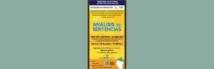 El TEPJF a través de la Dirección General de Relaciones Institucionales Nacionales impartió este taller de Análisis de Sentencias virtual a más de 300 participantes.
