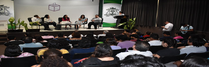 Chetumal, Q. Roo a 24 de abril de 2018.- Con la finalidad de promover la participación electoral de las y los jóvenes universitarios en los próximos comicios del domingo 1° de julio, autoridades electorales de Quintana Roo organizaron el primer conversatorio ?Diálogo con jóvenes. ¿Por qué habrá elecciones confiables y seguras el 1° de julio?, en la Universidad de Quintana Roo.
