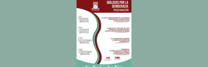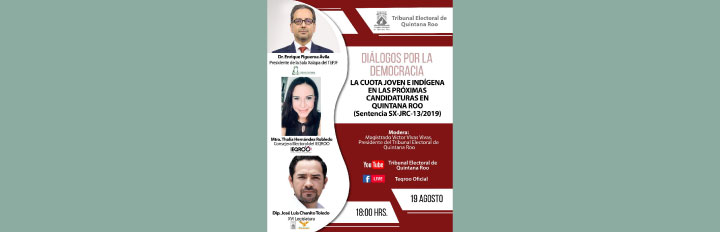 Informó que la primera edición de Diálogos por la Democracia inicia el 19 de agosto a las 18:00 horas con la mesa de análisis sobre “La Cuota Joven e Indígena en las Próximas Candidaturas en Quintana Roo”. (Sentencia SX-JRC-13/2019).