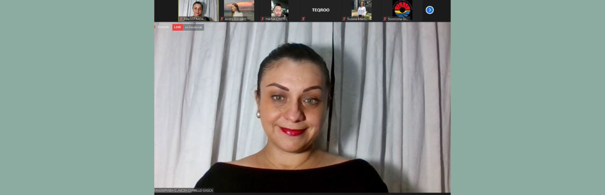 Chetumal, Quintana Roo a 21 de agosto de 2020.- Impartió la Magistrada del Tribunal Electoral de Quintana Roo, Claudia Carrillo Gasca la conferencia virtual “Violencia Política contra las Mujeres en Razón de Género a la luz de las reformas del 2020” a invitación de Anahí González Hernández, Regidora de Turismo, Ecología y Medio Ambiente en el Municipio de Benito Juárez.