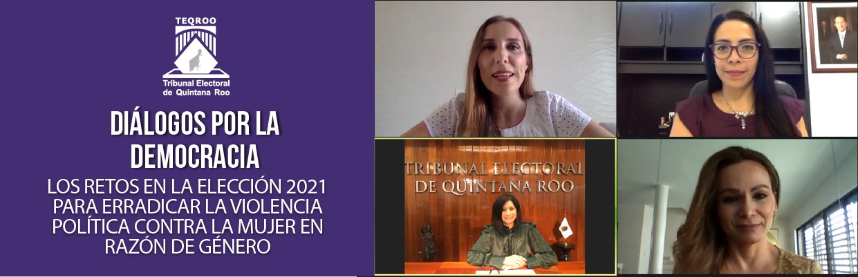 Chetumal, Quintana Roo a 26 de agosto de 2020.- Realizó el Tribunal Electoral de Quintana Roo la segunda mesa de análisis de los Diálogos por la Democracia con el tema “Los Retos en la Elección 2021 para Erradicar la Violencia Política Contra la Mujer en Razón de Género", con la participación de expertas en la materia.