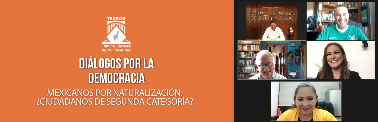 Chetumal, Quintana Roo a 17 de septiembre de 2020.- El Tribunal Electoral de Quintana Roo (TEQROO) continua con los Diálogos por la Democracia con la finalidad de difundir la cultura democrática, por lo que este día correspondió la mesa de análisis “Mexicanos por Naturalización. ¿Ciudadanos de segunda categoría?”, donde los especialistas invitados emitieron su opinión sobre el tema.