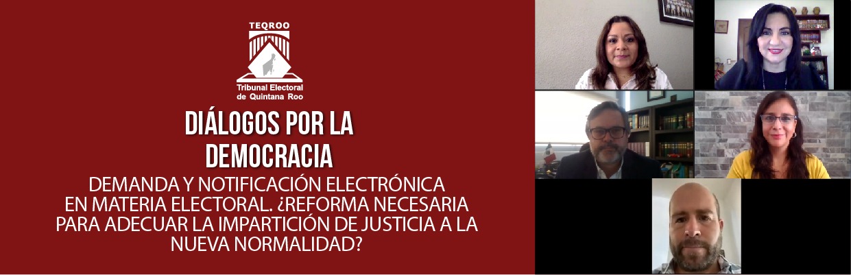 Chetumal, Quintana Roo a 30 de septiembre de 2020.- Con la mesa de análisis la "Demanda y Notificación Electrónica en Materia Electoral”. ¿Reforma Necesaria para Adecuar la Impartición de Justicia a la Nueva Normalidad?, celebró el Tribunal Electoral de Quintana Roo (TEQROO) el 7º Diálogo por la Democracia.