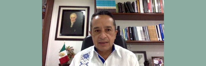 Chetumal, Quintana Roo a 16 de octubre de 2020.- El Magistrado Víctor Vivas Vivas, Presidente del Tribunal Electoral de Quintana Roo (TEQROO) participó en la conmemoración del 67 Aniversario del Voto de la Mujer en México, evento que presidió de manera virtual el Gobernador del Estado, Carlos Joaquín González y la Directora General del IQM, Silvia Damián López.