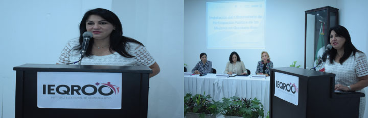 En su discurso, la Consejera Presidenta del IEQROO, Mayra San Román Carrillo Medina dijo que la instalación del Observatorio, así como del Grupo de Trabajo servirá para materializar los objetivos de éste, a través de propuestas de políticas públicas, con perspectiva de género; mecanismos de seguimiento y evaluación del avance o retroceso de la participación política de las mujeres, para intervenir de manera oportuna; incidir en la legislación estatal en materia de derechos políticos de las mujeres; entre otros.