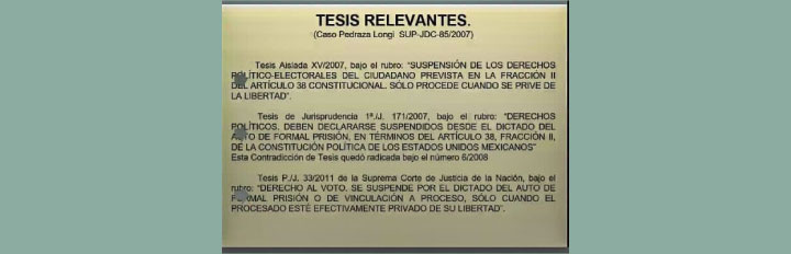 El Magistrado Vivas Vivas expuso ejemplos una serie de ejemplos de casos paradigmáticos que se han presentado en el país y Quintana Roo, sobre este tema, entre ellos, el que resolvió la Sala Superior del TEPJF en el expediente SUP-JDC-85/2007, mejor conocido como caso Pedraza Longi, donde determinó que respecto al principio de presunción de inocencia, los derechos político-electorales de las personas sujetas a un proceso criminal, debían mantenerse intocados, siempre y cuando el ciudadano se encuentre libre bajo caución.