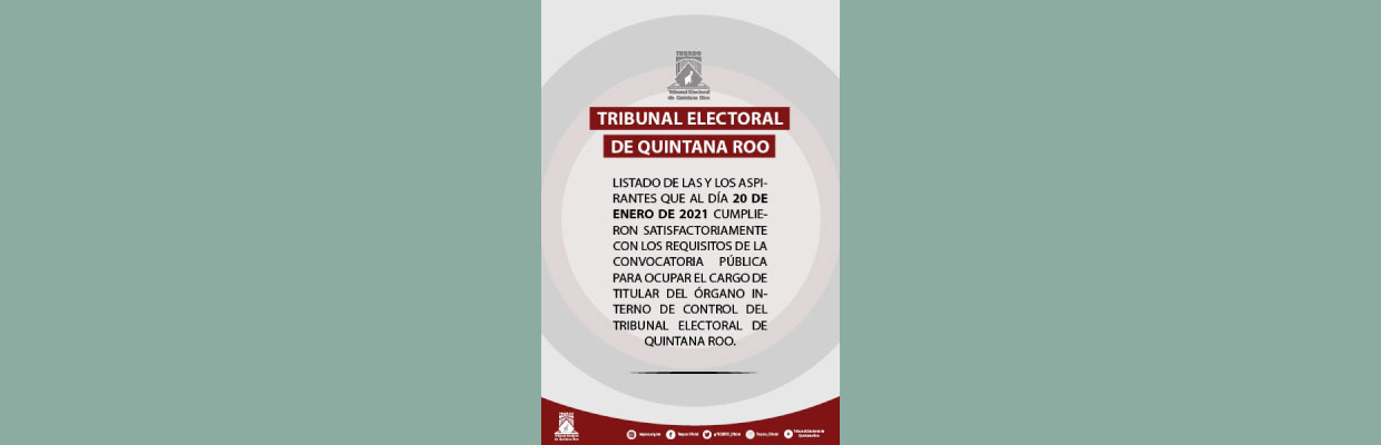Este órgano jurisdiccional publicó en la página web www.teqroo.org.mx (http://www.teqroo.org.mx/2018/ListaConvocatoria_OIC.php) la lista de las y los aspirantes que al día 20 de enero de 2021 cumplieron satisfactoriamente con los requisitos de la Convocatoria Pública para ocupar el cargo de Titular del Órgano Interno de Control.