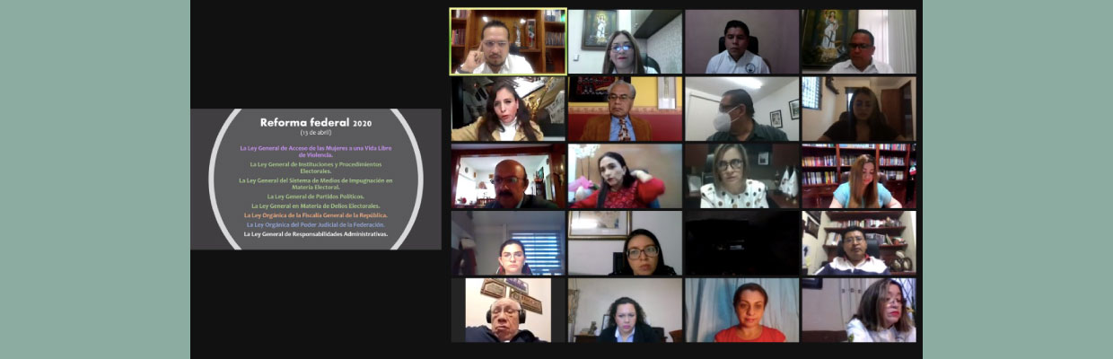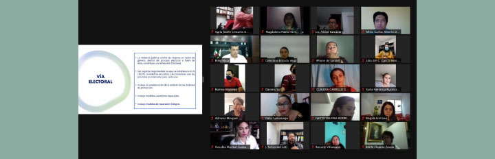 Chetumal, Quintana Roo a 19 de febrero de 2021.- La Magistrada Claudia Carrillo Gasca, el Magistrado Sergio Avilés Demeneghi y el personal jurídico del Tribunal Electoral de Quintana Roo participaron de manera virtual en la 3ª Sesión Académica del 2021 de la Barra de Abogados Electorales de México A.C., en la que la Magistrada de la Sala Xalapa del Tribunal Electoral del Poder Judicial de la Federación, Eva Barrientos Zepeda dictó la conferencia “Retos para hacer efectiva la reforma en materia de Violencia Política contra las Mujeres en Razón de Género”.
