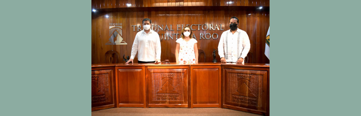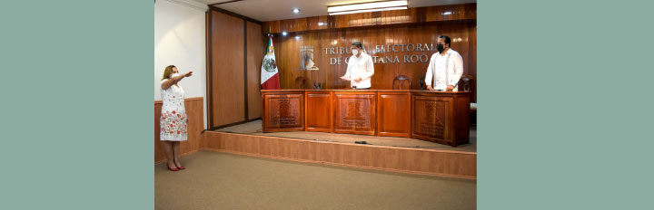 Chetumal, Quintana Roo a 06 de abril de 2021.- El Magistrado Presidente del Tribunal Electoral de Quintana Roo, Víctor Vivas Vivas y el Magistrado Sergio Avilés Demeneghi presidieron la toma de protesta de Karla Noemí Cetz Estrella, como Jefa de la Unidad de Transparencia, en el salón de Plenos de este órgano jurisdiccional.