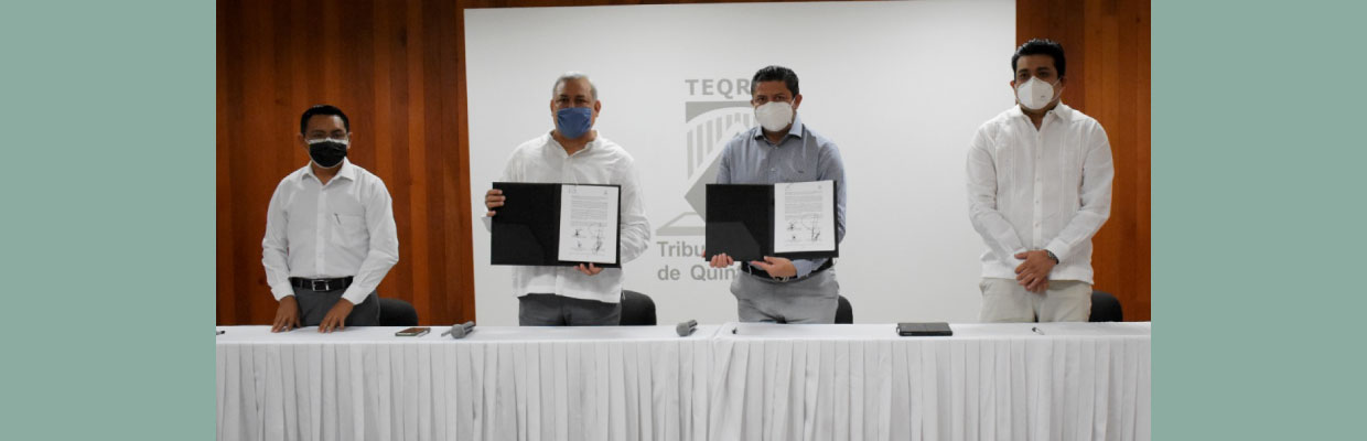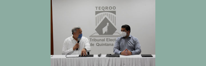 Chetumal, Quintana Roo a 20 de abril de 2021.- El Tribunal Electoral de Quintana Roo (TEQROO) y la Secretaría Ejecutiva del Sistema Anticorrupción del Estado de Quintana Roo (SESAEQROO) firmaron un convenio de colaboración, en el salón de usos múltiples del Centro de Capacitación e Investigación Electoral.
