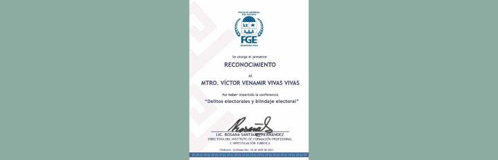 A nombre del Fiscal General del Estado, Oscar Montes de Oca Rosales, el Director General de Desarrollo Institucional, Vicente Iturbe Mendoza agradeció al Tribunal Electoral y al Magistrado Víctor Vivas Vivas las facilidades para concretar esta capacitación y reconoció el compromiso que existe en ambas instituciones para trabajar en los temas de la profesionalización de las y los servidores públicos. Seguidamente, procedió a dar lectura a la síntesis curricular del ponente.