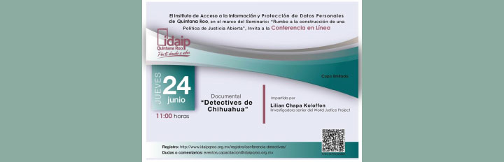 La presentación de este documental se realiza en el marco del Seminario “Rumbo a la construcción de una Política de Justicia Abierta”, que imparte el IDAIPQROO en diversas fechas del mes de mayo, junio y julio.