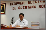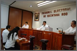El Pleno del TEQROO, Magistrado Presidente Vivas Vivas, Magistrada Molina Bermúdez y Magistrado Cortés Mugártegui, escuchando la lectura del proyecto de sentencia. |