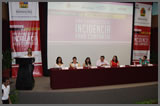 Presidium en la presentación de la Guia “2% y + Mujeres en Política” en donde la Magistrada Sandra Molina Bermúdez (sentada 2ª de i a d), con la representación del TEQROO estuvo presente.