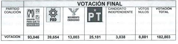 Se confirma la declaración de Validez de la lección de Miembros del Ayuntamiento del Municipio de Benito Juárez, a la planilla ganadora correspondiente a la coalición “Para que Tú Ganes Más”, y en consecuencia, la entrega de la Constancia de Mayoría y Validez respectiva, expedida por el Consejo Distrital VIII del Instituto Electoral de Quintana Roo. . |