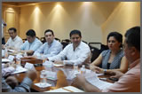 Integrantes del Consejo Estatal de la Ley de Cultura de la Legalidad, por parte de los órganos autónomos el Magistrado Vivas Vivas (3º i a d), el Consejero Presidente del ITAIP José O. Espinosa Rodríguez (2º i a d), el Presidente de la CEDH Enrique N. Mora Castillo (3º d a i) y (semioculto a la d), Juan Serrano E. Serrano Peraza Secretario General del IEQROO, con el Secretario General del Gobierno, Gabriel Mendicuti Loría (centro).