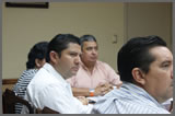 En primer plano el Magistrado Vivas Vivas y al fondo el Secretario de Gobierno Mendicuti Loría observando la exposición de motivos. |
