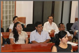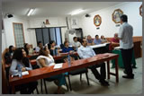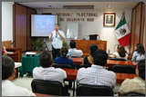 En filas de en medio, militantes de partidos políticos, atrás el Magistrado José Carlos Cortés Mugártegui, durante el desglose del tema Derecho Administrativo Sancionador Electoral. |