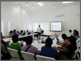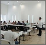El Secretario de Estudio y Cuenta, Jorge Armando Poot Pech, durante su exposición en el Centro Comunitario de Isla Mujeres.