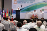 Al inaugurar la VI Conferencia Iberoamericana sobre Justicia Electoral, el Magistrado Presidente de la Sala Superior del Tribunal Electoral del Poder Judicial de la Federación (TEPJF), José Alejandro Luna Ramos, aseguró que las instituciones encargadas de impartir justicia electoral tienen la alta misión de conducir el relevo pacífico de los cargos de elección popular y asegurar el ejercicio pleno de los derechos político-electorales del ciudadano. Acompañado por Roberto Borge Angulo, Gobernador de Quintana Roo, y Daniel Zovatto, Director Regional para América Latina del Instituto Internacional para la Democracia y la Asistencia Electoral (IDEA Internacional), el Magistrado Luna Ramos afirmó que los tribunales electorales de las más de 20 naciones participantes constituyen factores reales para la gobernabilidad y la estabilidad social. En este sentido, se dijo convencido de que a través de esta actividad se enriquecerá la reflexión regional, generando un aprendizaje colectivo de cara a los retos que enfrentan los Estados nacionales. Además, destacó, “fortaleceremos el servicio público electoral que se nos ha encomendado, consolidando así la confianza ciudadana en nuestras respectivas sociedades”. Por su parte, Daniel Zovatto reconoció el prestigio y profesionalismo de la labor desempeñada por el máximo organismo jurisdiccional comicial del país, y señaló que los retos y desafíos actuales de la democracia dan a la justicia electoral un papel cada vez más relevante en las naciones. El especialista en la materia expresó que la tarea fundamental de los tribunales electorales es aportar confianza en el sistema democrático y tutelar los derechos políticos de los ciudadanos, por lo que exhortó a fortalecer a estas instituciones, a fin de que la justicia electoral sea independiente, efectiva y garantista. Al hacer uso de la palabra, el Gobernador del Estado de Quintana Roo, Roberto Borge Angulo, destacó la importancia del evento organizado por el TEPJF, pues permite promover el encuentro de los representantes de organismos jurisdiccionales electorales, fortaleciendo sus vínculos de coordinación y cooperación para la resolución de controversias en la materia. La Conferencia Iberoamericana, celebrada por primera