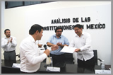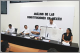 Autoridades electorales y académicas, conmemoraron con panel de discusión el XCVII Aniversario de la Promulgación de nuestra Carta Magna. En el Aula Magna de la Universidad de Quintana Roo, se desarrolló el panel denominado “La influencia del Pensamiento Liberal en las Constituciones de México”, para conmemorar el XCVII Aniversario de la Promulgación de la Constitución Política de los Estados Unidos Mexicanos. Los integrantes de la mesa de análisis, organizado por la Gran Logia del Estado “Andrés Quintana Roo” y la facultad de Derecho de la Universidad de Quintana Roo, fueron el Magistrado Presidente del Tribunal Electoral Víctor Vivas Vivas, el Consejero Electoral del Instituto Electoral de Quintana Roo Alberto Muñoz Escalante, los catedráticos de la Universidad, Maestra Yunitzilim Rodríguez Pedraza y el Doctor Luís Gerardo Samaniego Santamaría. En sus conclusiones de análisis fueron coincidentes en asegurar que la Constitución Política de México está vigente y debe preservar sus principios fundamentales siempre anteponiendo el beneficio de la Nación y los mexicanos. Los temas, responsabilidad de cada uno, fueron: “Marco jurídico en la etapa final de la Nueva España y los Sentimientos de la Nación”; “Constitución de 1824”; “Constitución de 1857”; y “Congreso Constituyente de 1917”. En su participación, el Magistrado Presidente del Tribunal Electoral Víctor Vivas Vivas, dio a conocer el origen de la participación de los mexicanos desde el momento inicial de la asamblea que redactaría la Constitución de 1812 a través del abogado Don Miguel de Lardizábal, criollo tlaxcalteca quien fuera insaculado como integrante de la Junta Central Gubernativa de Aranjuez en septiembre de 1808. Destacó que en ese tiempo de los 183 diputados constituyentes a las Cortes Generales y Extraordinarias establecidas posterior a publicarse la convocatoria respectiva en mayo de 1810, 130 eran españoles y 53 americanos, “lo que indicaba la desproporción en la conformación de dicha asamblea y lo difícil que resultó para los representantes de los reinos de indias hacer prevalecer en ella sus opiniones”. Para cerrar su participación, mostró una copia de los “Sentimientos de la Nación”, documento original que obra en poder del Archivo de la Nación, suscrito por José María Morelos y Pavón, subrayando que Don Adrés Quintana Roo redactó dicho documento en la forma que hoy lo conocemos, y en el se plasma el ideal de Patria que nuestros heroes imaginaron. Previamente había destacado: la primera constitución elaborada exclusivamente por mexicanos fue el Decreto Constitucional para la Libertad de América Mexicana, conocida también como Constitución de Apatzingan. Más adelante, la Maestra Yunitzilim Rodríguez Pedraza desglosó lo correspondiente a la Constitución de 1824 refiriéndose a las particularidades coincidentes con el ideal del pensamiento liberal, estableciendo los antecedentes que fortalecieron la generación del marco jurídico de la naciente República. En el orden de expositores, al hacer uso de la palabra, el Consejero Electoral José Alberto Muñoz Escalante reseño la importancia que tuvo el hecho del surgimiento de las ideas masónicas, tanto federalistas o liberales y las centralistas o conservadoras, en la conformación del nuevo Estado liberal. Apuntó, entre otros aspectos, la lucha férrea que se originó entre estos grupos, quienes defendieron sus posturas e ideales constantemente a través de levantamientos, asonadas y golpes de Estado, lo cual originó verdaderas fricciones y retrasos en la consolidación del nuevo Estado Independiente. Por su parte, el destacado catedrático Luís Gerardo Samaniego Santamaría, destacó en su exposición que este foro ayudó a recordar sobre que bases se ha generado nuestra nación, sobre que acontecimientos se ha cimentado para llegar, a través de la lucha, al establecimiento de un sistema federal; así como del reconocimiento de derechos y de principios democráticos, base estos últimos de nuestra Constitución vigente. En el marco de su análisis, Samaniego Santamaría encuadró las actuales reformas a nuestra Carta Magna, subrayando la distancia que se percibe de éstas acciones con los principios que aquí se han señalado como origen de nuestra Constitución, mencionando el de “no reelección”. Y dijo a este respecto: curiosamente hoy vemos en las reformas (que) adaptándose a los tiempos actuales poco o nada tienen que ver con los principios que dieron origen a la Constitución. Hoy, posterior a la promulgación de la reforma político electoral, se permite la reelección, en el caso de diputados hasta en cuatro ocasiones, preguntándose entonces: en donde están los principios que le dieron origen a la Constitución de 1917. Mencionó que la reforma actual transforma el Instituto Federal Electoral (IFE) en Instituto Nacional de Elecciones cuyos integrantes elegirán, a propuesta de los Congresos estatales, a los integrantes de los Institutos Electorales de cada entidad y que también los Magistrados de los Tribunales Electorales ahora serán nombrados desde el Congreso de la Unión, señalando: el Senador de Coahuila ahora dirá quien será el Magistrado Electoral de Quintana Roo. En este punto su reflexión se refirió a la distancia que se tomó con respecto al principio federal que establece el Artículo 42 de la Constitución aun vigente. Bajo el tamiz de su propia reflexión indicó que los legisladores que entrarán en la cámara baja del Congreso de la Unión en el 2015 y los legisladores de la cámara alta que ocuparán las curules posterior a la elección de 2018, con las prerrogativas de las actuales reformas, ¿Qué les impediría pronunciarse por reelegir al Presidente de la República o a los gobernadores? Para concluir dejó establecido su pleno acuerdo con el Artículo 39 de la Constitución: el pueblo mexicano es libre de modificar o alterar la forma 