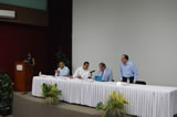 Autoridades del presidium acompañando al expositor de la conferencia “La Reforma de la FEPADE y de los delitos electorales en 2014”.