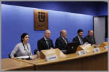 Panel de autoridades universitarias e investigadores, acompañando al expositor, Magistrado Salvador Olimpo Nava Gomar, Raúl Ávila Ortiz, coordinador del Programa de Cooperación Académica y Asistencia Técnica México-Centroamérica de Instituto Internacional para la Democracia y la Asistencia Electoral (IDEA), Issa Luna, investigadora del IIJ de la UNAM y César Astudillo Reyes, investigador del mismo instituto.