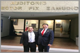 El Magistrado Víctor V. Vivas Vivas, a la salida del Seminario, acompañado por el Magistrado Presidente del Tribunal de Justicia Electoral de Baja California, Mtro. Armando Bejarano Calderas. |