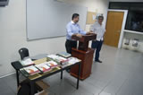 En la cátedra del siguiente día, 21 de octubre, el Secretario de Estudio y Cuenta Jorge Armando Poot Pech, hizo entrega de otros paquetes de materiales editados por el TEQROO a otros alumnos de la carrera de Derecho.