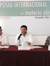 El Magistrado Presidente del TEQROO, Víctor V. Vivas Vivas, durante una de sus intervenciones como moderador de la mesa “Transparencia y partidos políticos” en el Simposio Internacional en Materia Electoral en Baja California. |