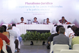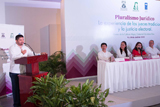En una sociedad democrática el respeto a la pluralidad es lo que dignifica a los pueblos y engrandece a las naciones: Vivas Vivas Los jueces son garantes del acceso a la justicia de la ciudadanía indígena, a través de la tutela e inclusión de sus normas y costumbres: De León Gálvez Respetando nuestras diferencias es como se construye el sistema democrático que todos anhelamos: Avilés Albavera Al pronunciar las palabras de bienvenida a los participantes en el encuentro “Pluralismo jurídico; La experiencia de los jueces tradicionales y la justicia electoral”, el Magistrado Presidente del Tribunal Electoral de Quintana Roo (TEQROO) Víctor Venamir Vivas Vivas destaco la confianza del Tribunal Electoral del Poder Judicial de la Federación (TEPJF) y del Programa de las Naciones Unidas para el Desarrollo (PNUD) al considerar como sede de este evento la ciudad capital de Quintana Roo, Chetumal, estado pionero en materia de Justicia Indígena. Asimismo hizo extensivo este agradecimiento a los ponentes en las mesas de trabajo, a los Jueces Tradicionales y a los expertos en materia de Justicia Indígena destacando que ello garantizaba el éxito en resultados de este encuentro. Y subrayo “es imperante crear conciencia ciudadana ya que mientras haya racismo, desigualdad, discriminación y exclusión difícilmente podremos hablar de una verdadera justicia”, al tiempo que reconoció la importancia de estos espacios de reflexión. Por su parte, al realizar la inauguración oficial el Magistrado Presidente de la Sala Regional Xalapa, del TEPJF, Adin Antonio de León Gálvez, apunto: El Estado mexicano está obligado a reconocer los derechos político-electorales de los indígenas en su legislación, y a volver efectivo su ejercicio al permitir el acceso a la justicia para que puedan ser reclamadas las violaciones ante tribunales competentes, a través de recursos o juicios efectivos. Y recordó que desde la creación del TEPJF, se han incrementado la resolución de conflictos electorales en el ámbito de los sistemas normativos internos, gracias a que la ciudadanía puede realizar la defensa de sus derechos político-electorales ante lo cual pidió a los jueces ser garantes del acceso pleno a la justicia, y de hacer factible el ejercicio de éstos derechos a la ciudadanía indígena, a través de la tutela e inclusión de sus normas y costumbres internas en un sistema constitucional y democrático. En este contexto dejó en claro que la protección a los derechos de los indígenas debe hacerse con respeto absoluto a sus creencias, reconociendo su autonomía y libre determinación, pues el reto de los miembros electorales está en generar un cambio en la vida de los 15 millones de indígenas mexicanos que tienen sus propios mecanismos de gobierno y de resolución de conflictos. Al hacer uso de la palabra, el Magistrado Presidente de la Asociación de Tribunales y Salas Electorales de la República Mexicana (ATSERM) Hertino Áviles Albavera,, comentó que solo respetando nuestras diferencias es como se construye el sistema democrático que todos anhelamos. “No es el encontrarnos diferentes y el imponer a los otros nuestros pensamientos a través de la ley, es a partir de esa diferencia encontrar la razón de nuestra unidad y de nuestra fortaleza para poder identificar al otro con su espacio, con su cultura, con su contexto para juntos poder construir y caminar en el rumbo del derecho”, refirió el Magistrado Presidente. Previo a la inauguración de los trabajos, los asistentes participaron en una ceremonia maya de nombre K’aat óolal ti yuum k’uj que significa “petición de bendiciones al Dios todopoderoso” que consiste en pedir la ayuda divina a favor de una familia o individuo. Puede seguir la transmisión del foro “Pluralismo Jurídico La experiencia de los jueces tradicionales y la justicia electoral” que se lleva a cabo en el Museo de la Cultura Maya, en Chetumal Quintana Roo, los días 9 y 10 de abril, a través de Plataforma Electoral, el canal por Internet del Tribunal Electoral del Poder Judicial de la Federación (TEPJF). |