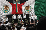 El Magistrado Víctor Venamir Vivas Vivas, la Magistrada Sandra Molina Bermúdez y el Magistrado José Carlos Cortés Mugártegui, Presidente e integrantes del Pleno del Tribunal Electoral de Quintana Roo, asistieron a los eventos conmemorativos por el 41 Aniversario del Estado libre y soberano de Quintana Roo. En primera instancia, en la explanada de la Bandera, frente a la sede del Poder Ejecutivo, se izó la Bandera con el Escudo de Quintana Roo. Más adelante, en el recinto de Plenos del Congreso local con la presencia de los diputados de la XIV Legislatura, se recordó la determinación histórica y política del entonces presidente Luis Echeverría Álvarez, por cimentar los inicios de la vida institucional como estado libre y soberano, al presentar la iniciativa y posteriormente decretar la creación de Quintana Roo como parte integrante de la federación una fecha como hoy, hace 41 años. Los titulares de los poderes Ejecutivo, Roberto Borge Angulo y Judicial Fidel Villanueva Rivero, estuvieron acompañados en el presidium por los Diputados Constituyentes Gilberto Pastrana Novelo, Mario Bernardo Ramírez Canul y Alberto Villanueva Sansores. Y entre los invitados especiales también se contó con la presencia de los dignatarios mayas, legisladores federales, presidentes municipales y representantes de diversos sectores de la sociedad. |