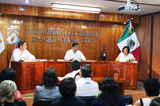 Los integrantes del Pleno del Tribunal Electoral de Quintana Roo (TEQROO), Magistrado Presidente Víctor Venamir Vivas Vivas, Magistrada Nora Leticia Cerón González y Magistrado Vicente Aguilar Rojas, en sesión de este día 26 de enero de 2016, emitieron su voto unánime a favor de aprobar el proyecto de sentencia del juicio de inconformidad registrado en el libro de gobierno con la clave JIN/001/2016, que estableció como infundado el primer agravio señalado en el medio de impugnación respecto a la incorrecta aplicación de la fórmula utilizada por la responsable, en este caso el Consejo General del Instituto Electoral de Quintana Roo, al establecer los topes de gastos de precampaña y campaña que aplicarán durante el próximo Proceso Electoral Local Ordinario 2016. También se determinó como infundado el segundo agravio, consistente en la inclusión de un elemento externo en la fórmula para la elaboración del tope de gastos de campaña para el tipo de elección de Diputados y miembros de los Ayuntamientos, destacando que resultó correcta la determinación de la responsable al utilizar el padrón electoral como elemento adicional para determinar los topes de gastos de precampaña y campaña, a fin de generar equidad en la contienda electoral que se verificará en el proceso electoral 2016, tal como lo reconoce el partido político actor. Por cuanto al tercero y último concepto de agravio relativo a la indebida aplicación del padrón electoral con corte al mes de octubre de 2015, en lugar de otro más reciente; en el proyecto se propone declararlo fundado, por tanto, el proyecto de sentencia establece: revocar el Acuerdo impugnado en cuanto a la parte conducente, quedando firme la fórmula aplicada por la responsable que toma en cuenta el padrón electoral para obtener el tope de gastos de precampaña y campaña para el Proceso Electoral Ordinario 2016, por cuanto al tipo de elecciones de Diputados y miembros de los Ayuntamientos, de acuerdo a la interpretación que le da a los artículos 179 y 304 de la Ley Electoral de Quintana Roo. En consecuencia, el dictamen del Pleno establece que la responsable deberá emitir un nuevo Acuerdo en el cual utilice el corte de padrón electoral de fecha 18 de diciembre de 2015, y aplique nuevamente la fórmula establecida en los artículos 179 y 304 de la Ley Electoral de Quintana Roo, determinando el tope de gastos de campaña y precampaña respectivamente, que se aplicarán para las elecciones de Diputados y miembros de los Ayuntamientos, en el Proceso Electoral Ordinario 2016, en el Estado. En este caso, el promovente fue el Partido Acción Nacional a través de la Ciudadana Cinthya Yamilie Millán Estrella en su carácter de representante propietaria de PAN ante el Consejo General del Instituto Electoral de Quintana Roo, habiéndose turnado, en estricta observancia al orden de turno, a la ponencia de la Magistrada Nora Leticia Cerón González para la elaboración del proyecto de sentencia aprobado hoy. El Partido Acción Nacional impugnó el Acuerdo del Consejo General del Instituto Electoral de Quintana Roo identificado con el número IEQROO/CG/A-045-15, por el que se determinaron los topes de gastos de campaña y precampaña para las modalidades de Gobernador del Estado, miembros de los Ayuntamientos y Diputados, que serán vigentes en el Proceso Electoral Local Ordinario dos mil dieciséis, emitido en la fecha veintidós de diciembre del año dos mil quince por la autoridad administrativa electoral local. |