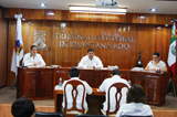 Conforme al orden de la convocatoria publicada, en la fecha precedente, los integrantes del Pleno del Tribunal Electoral de Quintana Roo, Magistrado Presidente Víctor Venamir Vivas Vivas, Magistrada Nora Leticia Cerón González y Magistrado Vicente Aguilar Rojas, resolvieron por unanimidad aprobar los resolutivos para los expedientes de procedimientos especiales sancionadores PES/020/2016 y PES/022/2016. Respecto al Recurso de Revocación RR/001/2016, enlistado en la convocatoria referida, el Pleno difirió su discusión al existir conexidad con los hechos y agravios hechos valer en el juicio de nulidad con la clave JUN/013/2016, en la elección de miembros del Ayuntamiento de Tulum, expediente que fuera turnado al Magistrado Vivas Vivas. Se declaran inexistentes las conductas denunciadas en el PES/020/2016 El proyecto de resolución aprobado lo presento la ponencia de la Magistrada Cerón González y en el se estipuló la inexistencia de las conductas denunciadas, porque, que si bien la propaganda electoral denunciada no cumple con lo dispuesto en el artículo 174 fracción VII de la Ley Electoral local, por no contener el símbolo internacional de material reciclable; de las indagatorias realizadas por la autoridad instructora, se advierte que los materiales con que fueron elaboradas dichas propagandas son reciclados y biodegradables, Quedando demostrado que el material utilizado reúne los requisitos exigidos por los artículos 77 y 174 de la Ley Electoral local y la norma oficial mexicana NMX-E-232-CNCP-2011 de MATERIALES PLÁSTICOS RECICLABLES. Se declaran inexistentes conductas atribuidas en el PES/022/2016 El proyecto resolutor aprobado, fue presentado por la ponencia del Magistrado Vivas Vivas, estableciendo: declarar inexistentes las conductas atribuidas a las partes denunciadas ante la falta de pruebas idóneas para acreditar los hechos imputados, ya que de las constancias que obran en autos, se advierte que algunos pendones si contienen el símbolo internacional de reciclaje; y en otros es imposible determinar si lo contienen o no. |