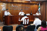 El Pleno del Tribunal Electoral de Quintana Roo (TEQROO), avanza jurisdiccionalmente al atender los juicios y quejas presentados, resolviendo este día un juicio de inconformidad y dos quejas en Procedimiento Especial Sancionador. El Magistrado Presidente, Víctor Venamir Vivas Vivas, la Magistrada Nora Leticia Cerón González y el Magistrado Vicente Aguilar Rojas, aprobaron por unanimidad los proyectos resolutivos presentados para el juicio identificado con la clave JIN/029/2016 y las quejas registradas como PES/018/2016 y PES/023/2016. Se declara improcedente el medio de impugnación En el JIN/029/2016, se impugnó la supuesta omisión de la Secretaria General del Instituto Electoral de Quintana Roo, de proporcionar copias certificadas del expediente conformado con motivo del procedimiento administrativo de responsabilidad instaurado por ellos; así como la resolución emitida el nueve de mayo por la Contraloría Interna del referido Instituto, por parte de los partidos políticos Acción Nacional, de la Revolución Democrática y MORENA. El proyecto de la ponencia del Magistrado Vivas Vivas, determinó declarar improcedente el medio de impugnación, en razón de que se actualizan las causales de improcedencia, consistentes en la falta de materia y de competencia. Lo anterior porque de las constancias que obran en autos se advierte que el Secretario General del Instituto, proporcionó a los impugnantes las copias certificadas del expediente conformado con motivo del procedimiento administrativo de responsabilidad referido, tal como se corrobora con los acuses de recibo que obran en los oficios SG/561/2016, SG/562/2016 y SG/563/2016, signados por el citado funcionario electoral, en los cuales consta la entrega de las copias realizada el 20 de mayo del año que cursa. Y, de acuerdo a lo establecido en la normativa electoral, este tribunal solo conocerá del juicio de inconformidad, cuando se impugnen actos o resoluciones emitidos por los órganos centrales del Instituto, sin embargo, contrario a lo aducido por los impugnantes, es de señalarse que la Contraloría Interna del Instituto, no forma parte de los referidos órganos centrales, ante lo cual no ha lugar a que esta autoridad jurisdiccional se pronuncie al respecto ya que no es un asunto de tipo jurisdiccional, sobre el cual, le competa conocer y resolver. Pleno determinan Inexistentes las conductas atribuidas en quejas PES/018/2016 y PES/023/2016, aprobando proyectos de la Magistrada Cerón González En el procedimiento especial sancionador identificado con la clave PES/018/2016, la queja fue interpuesta por el Partido de la Revolución Democrática, en contra de la ciudadana Clara Emilia Diaz Aguilar, candidata a diputada por el principio de mayoría relativa por el Distrito Electoral IV, del partido político MORENA, por actos realizados durante los días 17 y 18 de abril del año en curso, en el Municipio de Benito Juárez, Quintana Roo. El proyecto aprobado establece la inexistencia de las conductas atribuidas puesto que se señala que de las pruebas ofrecidas se desprende que no se hace alusión a la persona de la candidata, ciudadana Clara Emilia Diaz Aguilar, o de que ella esté presente en el lugar, y mucho menos que se haya hecho alguna invitación para votar a su favor. Y de que en cuatro fotografías que se ofrecieron como pruebas, no fue posible identificar de entre las personas que acompañan al candidato que se hace llamar Doctor Pech, a la ciudadana aludida, ya que únicamente se pudo observar algunas personas del sexo masculino, y la presencia de tres mujeres, cuya identidad no se precisa en el escrito de queja o en alguna actuación realizada. Por cuanto a la queja contenida en el expediente PES/023/2016, en la que la Coalición “Quintana Roo Une, una Nueva Esperanza” afirmaba que la Delegada de SEDESOL, en Quintana Roo, Freyda Maribel Villegas Canché, en fechas 18 y 21 de abril del presente año, difundió propaganda gubernamental en su cuenta oficial de twitter en tiempos de veda electoral, alusivas al programa “Seguro de Vida para Jefas de Familia” apareciendo, supuestamente, la la denunciada promocionando obras y servicios del Gobierno Federal. Se declara la inexistencia de las conductas denunciadas toda vez que de los medios de pruebas consistentes en las fotografías solamente constituyen meros indicios, sin que generen plena convicción, aunado a que tal y consta en el acta circunstanciada de la inspección ocular realizada por la Autoridad Administrativa Electoral, certificó que en las ligas de Internet de twitter y facebook atribuidas a la funcionaria pública Freyda Maribel Villegas Canché, no se encontraron las imágenes a que alude la parte quejosa. |