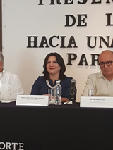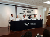 Cancún, Q. Roo a 7 de octubre de 2016.- Manuel González Oropeza, Magistrado del Tribunal Electoral del Poder Judicial de la Federación (TEPJF) presentó en Cancún, Quintana Roo el libro "Hacia una democracia paritaria. La evolución de la participación política de las mujeres en México y sus entidades federativas", en la Casa de la Cultura Jurídica. Asistieron a este importante evento, el Magistrado Presidente del Tribunal Electoral de Quintana Roo (TEQROO), Víctor Vivas Vivas y la Magistrada Nora Cerón González. El libro "Hacia una democracia paritaria. La evolución de la participación política de las mujeres en México y sus entidades federativas", es una obra que permite vislumbrar el camino por el cual han transitado las mujeres para superar la discriminación en el ámbito político. Manuel González Oropeza, Magistrado de la Sala Superior del Tribunal Electoral del Poder Judicial de la Federación, Karolina M. Gilas, profesora e investigadora del Centro de Capacitación Judicial Electoral y Carlos Báez Silva, director del Centro de Capacitación Judicial Electoral, son los autores del libro. El Magistrado Víctor Vivas