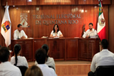 Chetumal, Q. Roo a 15 de agosto de 2017.- El Tribunal Electoral de Quintana Roo resolvió este martes en sesión de pleno, tres Juicios para la Protección de los Derechos Políticos Electorales del Ciudadano, dos relacionados con la Comisión de Justicia del Consejo Nacional del Partido Acción Nacional y uno que presentó la diputada local Silvia de los Ángeles Vázquez Pech contra la Comisión Nacional de Honestidad y Justicia del partido Morena. En la sala de pleno se celebró esta sesión pública a partir de las 13:00 horas, en la que se dio cuenta del JDC/004/2017 que interpuso Eber Ernesto Mendoza Martínez en contra la Comisión de Justicia del Consejo Nacional del Partido Acción Nacional. El actor pidió que se revoque la resolución emitida por la Comisión de Justicia del Consejo Nacional del citado partido político, el 8 de julio de 2017, en el expediente identificado con la clave CJ-JIN-042-2016, porque alega que fue omisa al analizar los agravios respecto a la equidad de género y a la violación de la convocatoria en razón de la duplicidad y alteración del acta publicada en estrados, por no ser la misma que se firmó en el acto protocolario. La ponencia a cargo del Magistrado Víctor Vivas Vivas resolvió declarar fundado el agravió y se revoque la resolución emitida por la Comisión de Justicia del Consejo Nacional del PAN. Y le otorga un plazo de 5 días hábiles para que resuelva el fondo de la controversia planteada.
