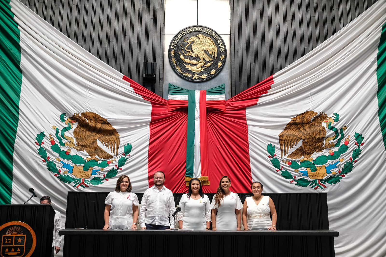 Ante la presencia de los tres poderes del Estado e invitados especiales reunidos en el recinto legislativo, el Diputado Renán Eduardo Sánchez Tajonar, Presidente de la Junta de Gobierno y Coordinación Política del Poder Legislativo, leyó el Decreto por el que se erige el Estado Libre y Soberano de Quintana Roo, como parte integrante de la Federación.